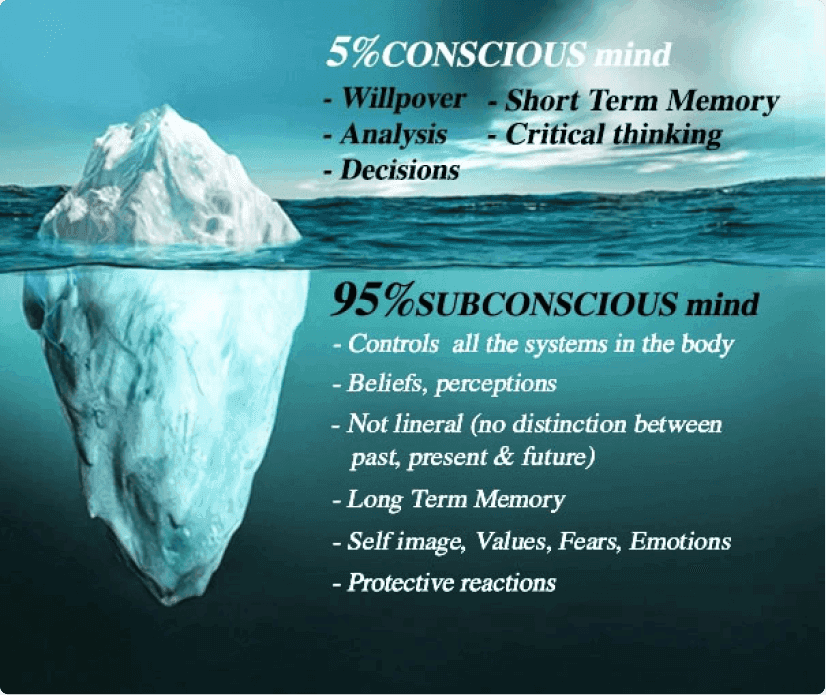 Notre esprit subconscient domine pour 95% notre esprit conscient et déteint sur nous de telle façon que nous fonctionnons par habitude et non comme les créateurs de notre vie en toute autonomie.